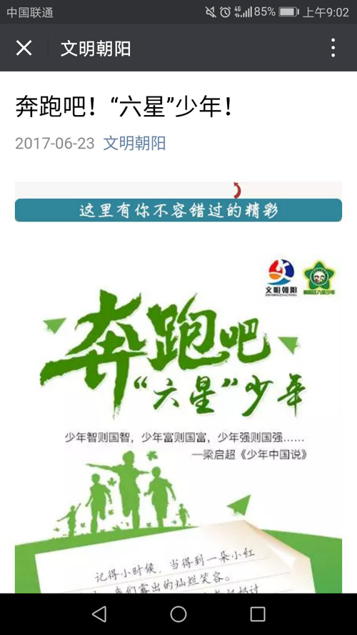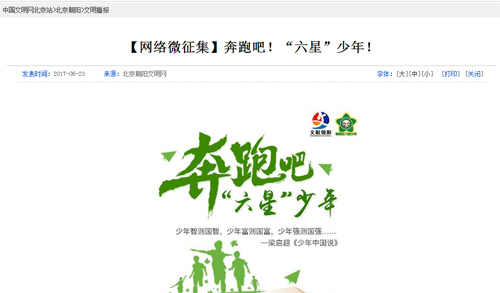 为推进“奔跑吧!‘六星’少年!”微活动顺利开展,朝阳区文明办聚合了多平台的媒体力量,通过新媒体、网站等多平台相辅相成的宣传渠道,多方同步助推了活动的开展。