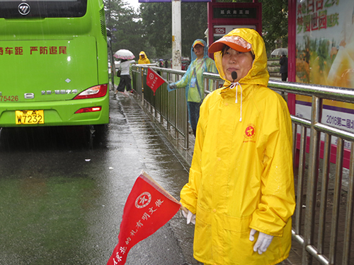 �������컪��Ա���������Ŷӳ�����2012��5�£���25����Ա������9����Ա����ԱΪ�Ǹɡ�ÿ������������ĸ���վ̨�ϣ��������ܿ������ǵ���Ӱ�����ۺ�������峿���߰������Ƕ��������վ̨��Ϊ���е����ṩ�������ǽ��ѡ���֧ƽ������55��Ķ����������������μ���־Ը�����Σ���ó˿ͱ����Ž��ٷ⣬���С���6000���š���һ֧���߲�����־Ը����ӡ� �ڶ���淶�������ϣ�����վ̨���赼�˿͡�����������������վ�⣬���컪��Ա���������Ŷ�Ҫ��ȫ���Աÿ�춼Ҫд������־���ѷ�����վ̨�ϵ��¼�¼������ͬʱ������������ó˿��ƾٹ�����������������컪��Ա���������Ŷ���ѡ���ĺó˿��ٻ��а�������������˿�֮�ǡ�����3�ˣ��ٻ��������ƾ١���������ó˿��Ƚ����ˡ�������Ա��10�ˡ�