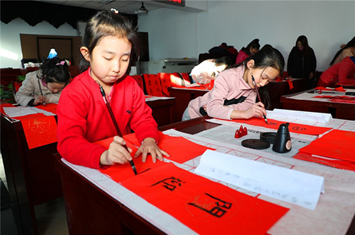 ��������ǰϦ��������������Сѧ��20����ʦ�����ű�īֽ��ȡ��һ��¡��������ʹ壬��չ��д������ף������ӭ���¡����Ϊ������ǰ��ȥ���������յ�ף������У�ī�����ݣ������ǽ�ƽʱѧϰ���鷨�γ�Ӧ�õ���ʵ���У�һ�������������˺����ǶԶ��¡������������Σ��ֳ���д����300��������Ⱥ������������ֳ���Χ�ź�����д��������������������ˣ������ǻ�����ʦ�Ĵ����£���д�õĴ����͵�����¹����˵ļ��У�������һ������ҳ��������˸������Ĺذ������˽⣬����Сѧ����У�ڵ��鷨У���γ̣���ÿ��������鷨�γ̣��齨���鷨��ȤС�飬��2011������ȫ��Χ�ڿ�չ�ʹ������������������߱��˴��������10����壬�ܵ��˰��յĻ�ӭ��