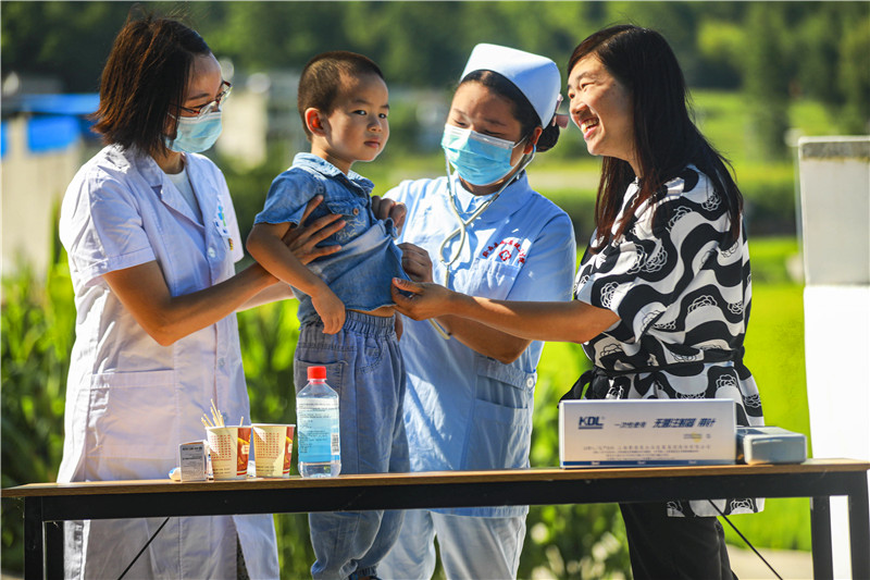 黔西县雨朵镇严格落实“家庭医生”进乡村服务活动,镇卫生院家庭签约医生走进全镇13个村(社区)的田间地头、农户家中,为群众送医送药,让群众有良好的身体,参加秋收秋种生产劳动,助力乡村振兴。(周训超)