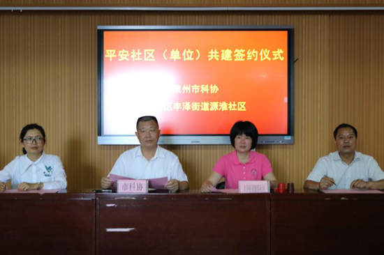 为进一步推动文明单位承担社会责任,5月12日上午,泉州市科协与丰泽街道源淮社区举行市级以上文明单位与社区结对共建、平安社区(单位)共建签订仪式。