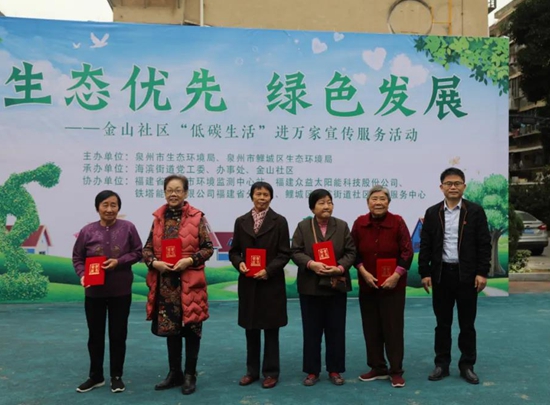 12月2日上午,由泉州市生态环境局、鲤城生态环境局联合主办的“低碳生活”进万家宣传服务活动在海滨街道金山社区举行。活动现场表彰了社区5户“低碳生活模范户”,福建众益太阳能科技股份公司为社区捐赠了LED路灯,共同助力低碳社区LED路灯改造项目。