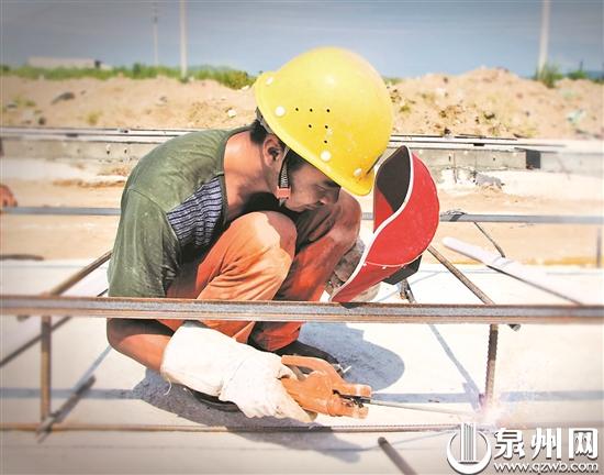 近日,记者在泉南及沙厦高速公路改扩建项目施工现场看到一派繁忙的景象,工人们冒着烈日“烤验”加紧施工。今年37岁的杨富有在工地上焊着钢筋架子,经常一蹲就是半天。“电焊工作业时,温度起码比其他地方高出10℃。”杨富有说,工地上一般有10多个工种,大家基本都要顶着烈日作业。无论是泥水工、搬运工还是搅拌工,在持续高温炙烤下,每个人的皮肤都被晒得黝黑。