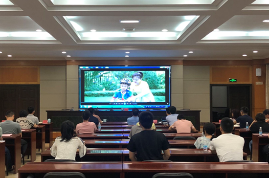 全体干部职工观看“文明健康有你有我”公益广告宣传。