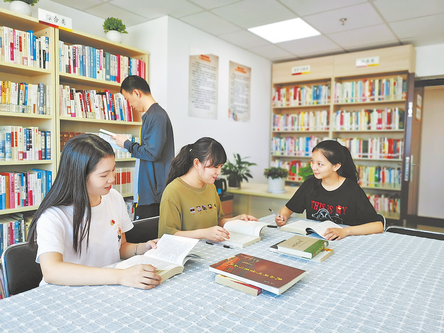 图为:市财政局职工在“财苑书屋”悦读分享