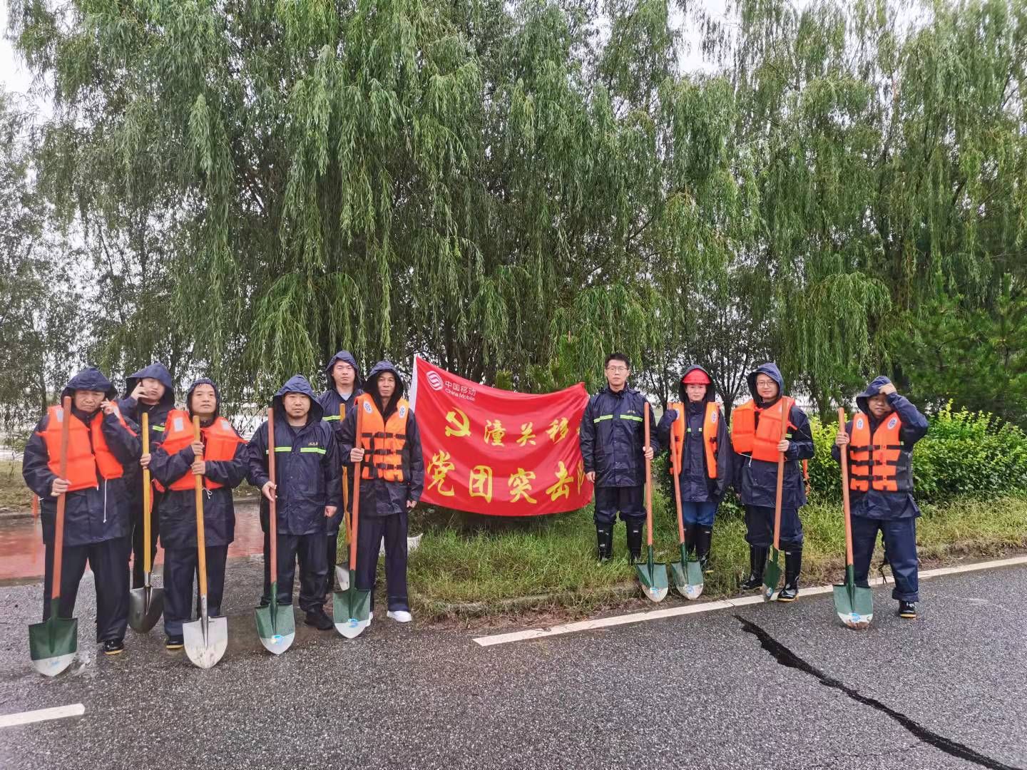 华阴移动分公司:挺身而出,不畏艰险。根据当地政府防汛安排,华阴移动分公司迅速部署,于9月27日由支部委员、党员、青年12人组建轮流值班防汛“党团突击队”,认真细致排查包联路段点位,奋战在防汛一线。