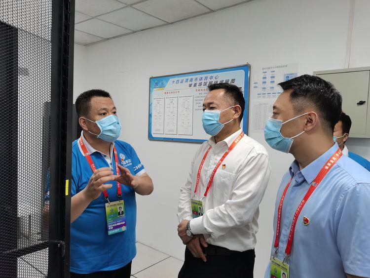 8月30日上午,渭南市工信局领导一行人深入渭南市体育中心各个机房检查十四运通信保障情况,详细询问保障安排情况及应急保障预案情况,市工信局领导就保障风险及隐患点排查与预防作了详细指导,并对本次通信保障准备工作给予了高度肯定。