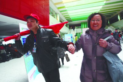 3月4日,姚俊坐在电脑前,熟练地为一位外地盲人上网输验证码。姚俊的胸前始终佩戴着慈善义工胸牌,上面的“五颗星星”闪闪发光。