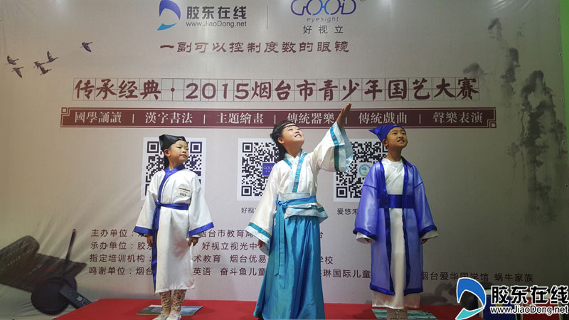 本次国艺大赛由烟台市关心下一代工作委员会、烟台市教育局、烟台广播电视台联合主办,胶东在线、好视立视光中心承办,千名小选手共参赛,在国学诵读、汉字书法、主题绘画、传统器乐、传统戏曲、声乐表演六个项目上一较高下。四轮海选结束,半决赛将于11月15日举行,经过海选的磨励,相信小选手们会带来更加精彩的表现。(记者 王向荣)