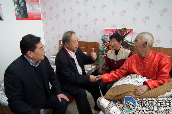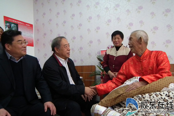 1月11日,烟台市委常委、宣传部长刘延林在市直有关部门负责同志陪同下,专程来到招远市轮胎西区老年人日间照料中心,亲切看望慰问“拾荒助学”的九旬老人刘盛兰。