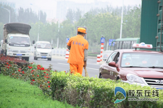 胶东在线网9月3日讯(见习记者 易金伟)一走上马路,扑面而来的是一股温暖的味道。今天,你走在马路上,不难看见一群“文明卫士”,他们有指挥交通的交警,也有义务监督文明行为的志愿者,还有清洁道路的环卫工,他们都在为“文明烟台”而努力。