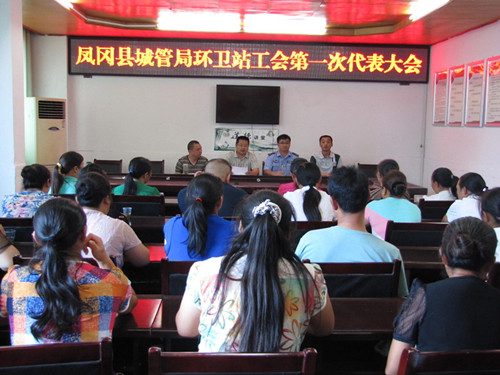 7月27日,贵州省遵义市凤冈县城管局环卫站工会举行第一次代表大会,选举产生了工会主席、副主席等工会组织机构人员7名,标志着凤冈县城区的广大环卫工人终于有了自已“温馨的家”。