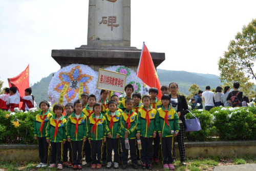 图为:县直各中小学学生代表革命烈士纪念碑祭扫宣誓