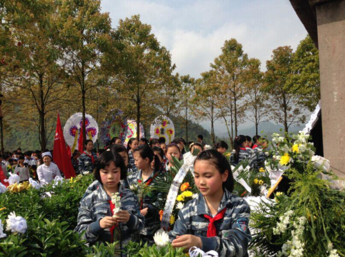 务川中学、民族中学、中等职业中学、县庆中学、大坪中学、第三小学及龙潭小学到大坪申佑广场进行缅怀先贤,学习先贤“忠、孝、义”精神并对先贤敬献鲜花和花圈。随后到务川革命烈士纪念碑祭扫革命烈士墓。团县委代表全县共青团组织向革命烈士敬献了花篮和花圈,县直各中小学学生代表分别依次向革命烈士敬献花篮和花圈,在场全体师生默哀三分钟,并向烈士们三鞠躬。在场的少先队员、共青团员和中共党员在纪念碑前分别重温了入队、入团和入党誓词;优秀学生代表讲话;团委书记用实例解读了社会主义核心价值观;仪式结束后,同学们还对烈士陵园及周边环境卫生进行了全面的清扫。