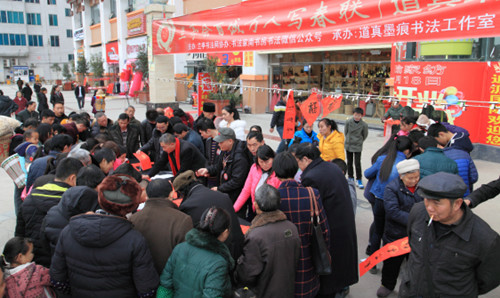 1月15日,贵州道真自治县开展“兰亭会百城万人”写春联(道真站)祝福2016公益送春联活动。