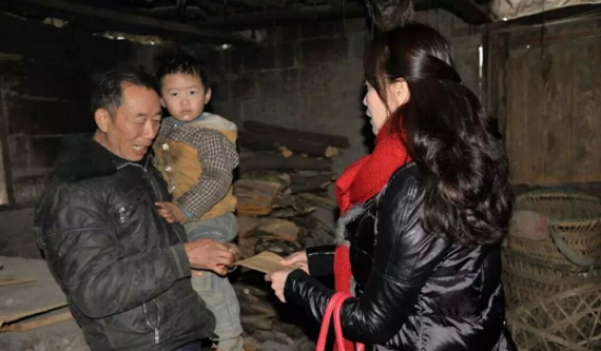 图为群工办为叮嘱杨永涛和爷爷送上节日慰问金