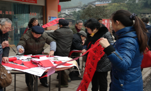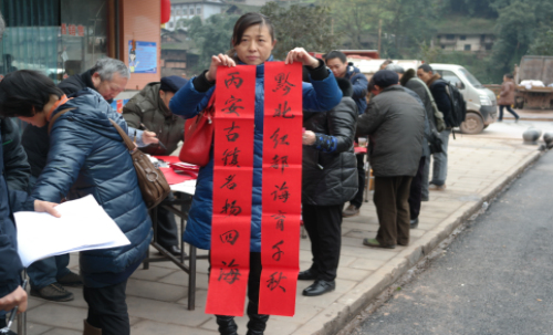 1月25日,由赤水市委宣传部主办,赤水市书法家协会承办的“写春联、送春联、家家户户贴春联”活动首站来到丙安乡,为老百姓送上新春的特别节日礼物。