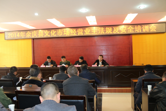 为进一步强化beplay官网app 市场经营管理,提高经营业主的安全经营意识,1月23日,余庆县召开全县歌舞厅、网吧、游戏厅、宾馆、印刷复制业、图书零售经营业主相关法规及安全工作培训会,并组织人员对beplay官网app 市场进行全面的督查和清理,确保全县人民度过安定、祥和的春节。