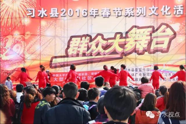 据了解,为使广大人民群众度过一个欢乐、喜庆、祥和、文明的新春佳节,大力营造“爱我美丽习水、建设绿洲红城”的节日氛围,猴年春节,县委宣传部组织了以送春联、书画摄影展、“群众beplay官网app 大舞台”文艺汇演等多种形式的春节欢庆活动。其中,2016年迎新春“群众beplay官网app 大舞台”惠民演出活动为期12天。
