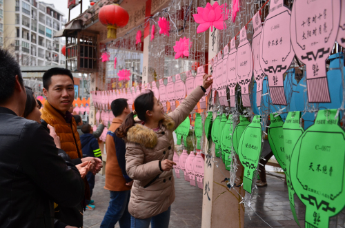 在猜谜现场,1000条写着灯谜谜面的彩条吸引着众多谜友的眼球,有猜字的、有成语的、有人名的、有地名的、有地方景色的等等,在益智添趣、娱乐生活的同时,更以这种传统高雅的群众文艺形式展示了一方水土历史、自然、经济、人文、民俗之特色与魅力,集趣味性、知识性于一体,让大家乐中有学。活动现场,主办方还为大家准备了各色奖品,让谜友们大显身手。